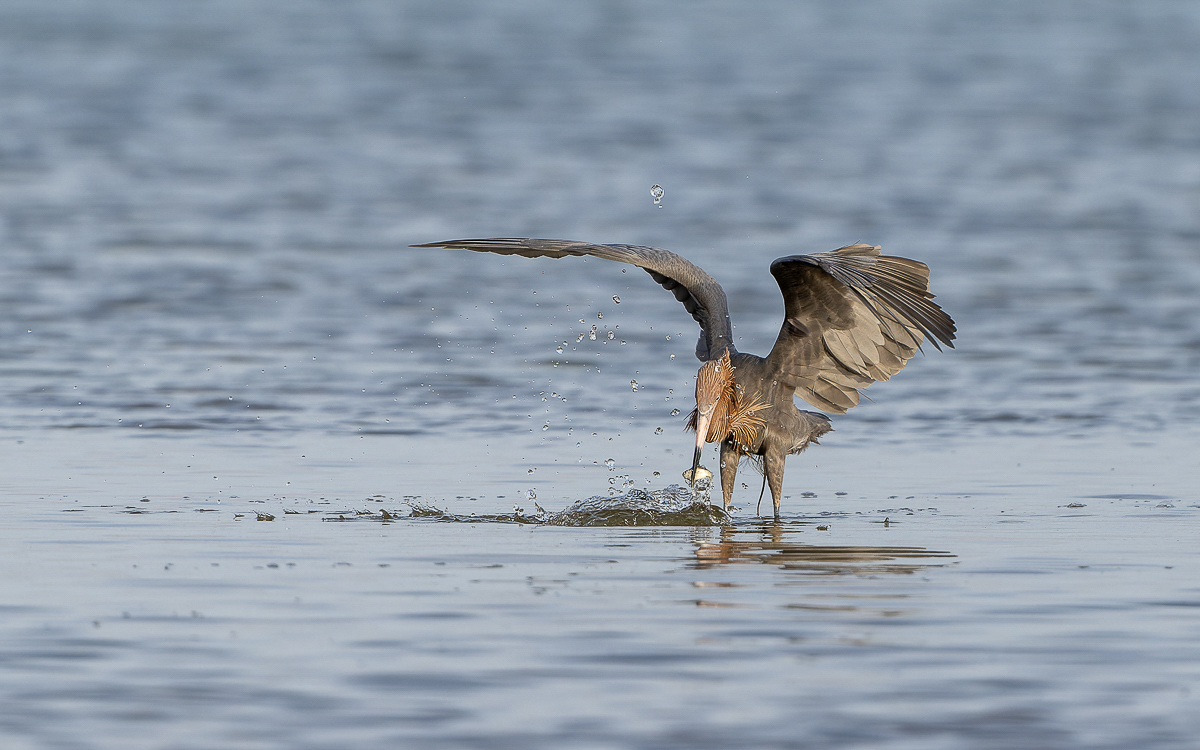 Reddish Egret…one of the last 4 cuts was of the same individual with wings spread out in front umbrella like in their classic hunting pose…but he decided the successful stab was slightly better